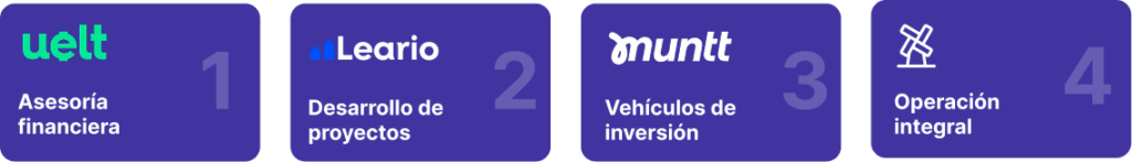 Cuatro subsidiarias trabajando en sincronía para generar valor en cada etapa de tu camino hacia la libertad financiera e inversión inmobiliaria.